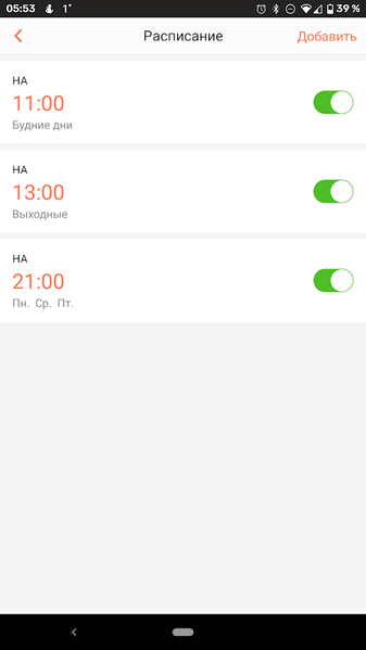 На странице настроек пользователь может переименовать устройство, установить громкость голосовых сообщений, изменить язык (доступны русский и английский), проверить наличие обновлений прошивки и настроить уборку по расписанию. Здесь же можно «поделиться» устройством, добавив администраторов пылесоса (к примеру, всех членов семьи).