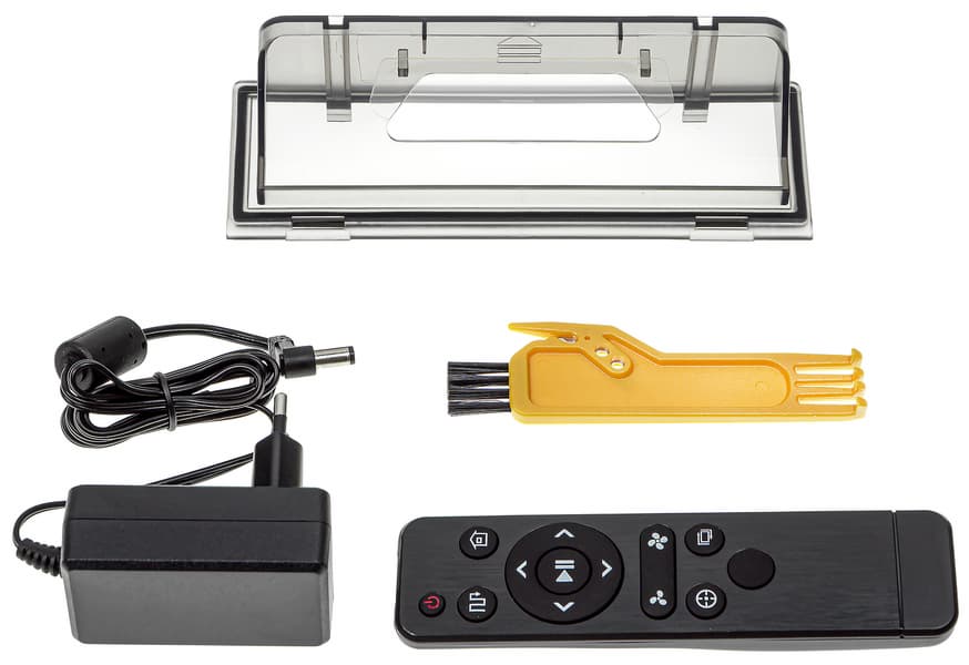 Инфракрасный пульт, входящий в комплект Okami U100, существенно расширяет возможности управления. Помимо кнопок возврата на базу и уборки в автоматическом режиме с его помощью можно запустить режим локальной уборки и программу обхода помещения по периметру.