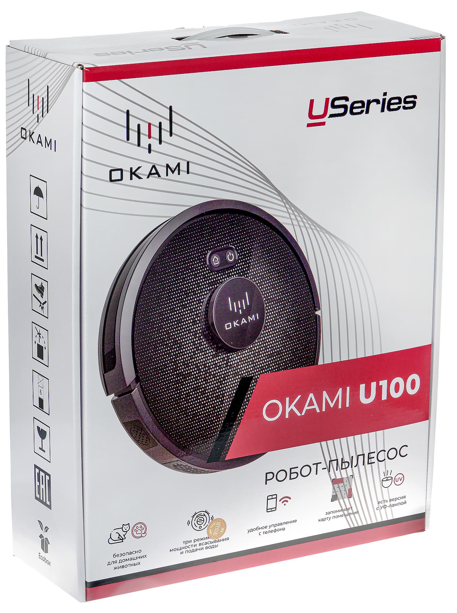 Возможность влажной уборки является приятным дополнениям к основным функциям, но стоит помнить о том, что без присмотра ее запускать не стоит: как и большинство подобных устройств, Okami U100 не рассчитан на долгий простой с полным баком.