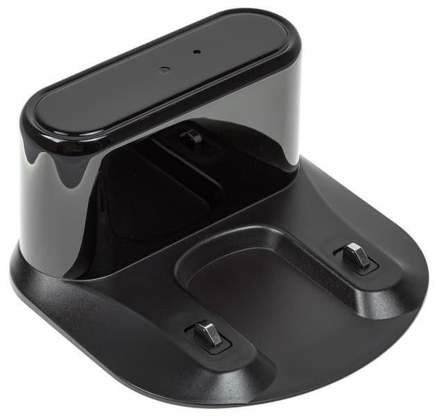 Пылесос может заряжаться как напрямую от адаптера питания (разъем для подключения находится на боковой стороне корпуса), так и с помощью базы традиционной конструкции. Над платформой с подпружиненными контактами для зарядки возвышается ИК-прозрачный корпус. Под ним скрываются излучатели, облегчающие поиск источника питания. В верхней части базы расположен светодиод, который горит при подключении к сети.