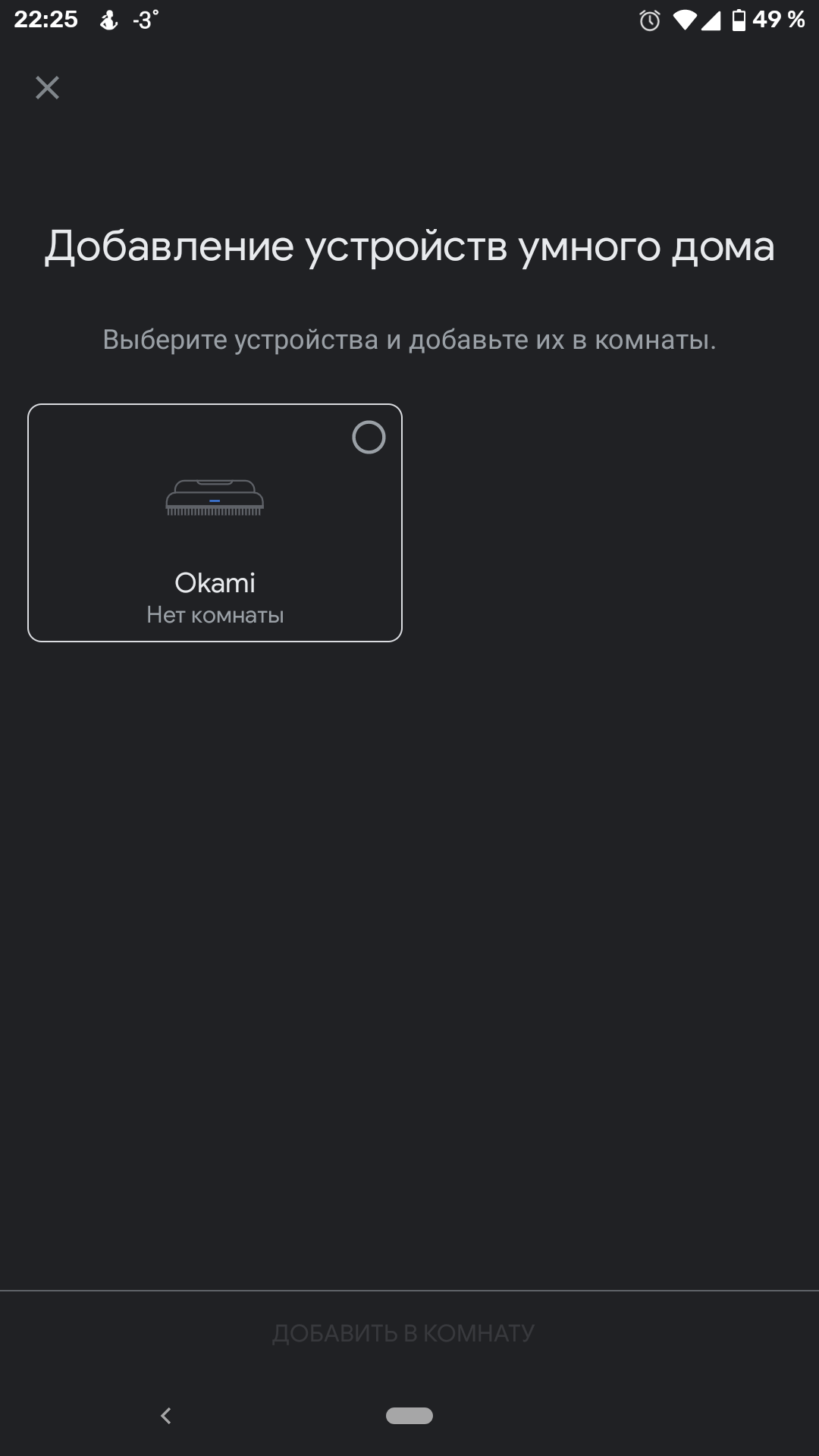 Для интеграции Okami U100 в среду Google Home надо воспользоваться пунктом «Ранее настроенные устройства», выбрать WeBack из длинного списка связанных сервисов и привязать робот-пылесос к одной из комнат умного дома.