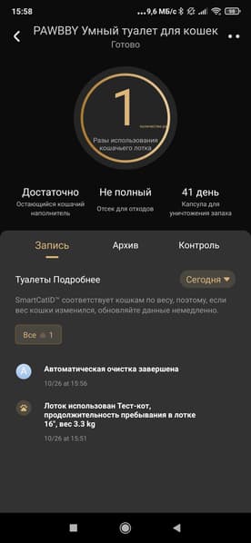 В приложении также можно посмотреть статистику использования туалета и счетчик дней использования капсулы. В разделе «настройки» можно выполнить калибровку веса (чтобы туалет отображал верный вес животного), а также получить дополнительную информацию по установке и настройке устройства. Плюс — ответы на часто задаваемые вопросы.