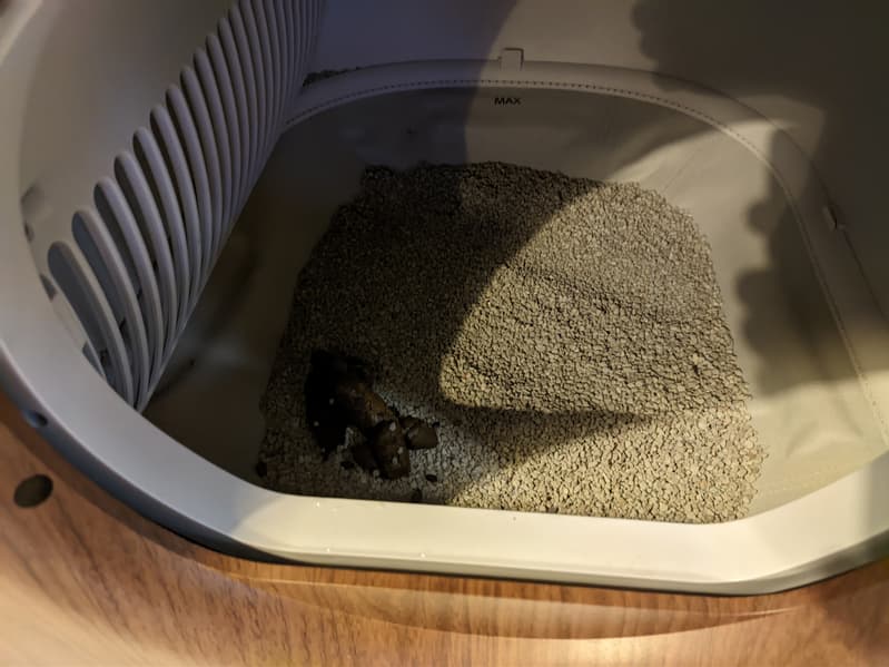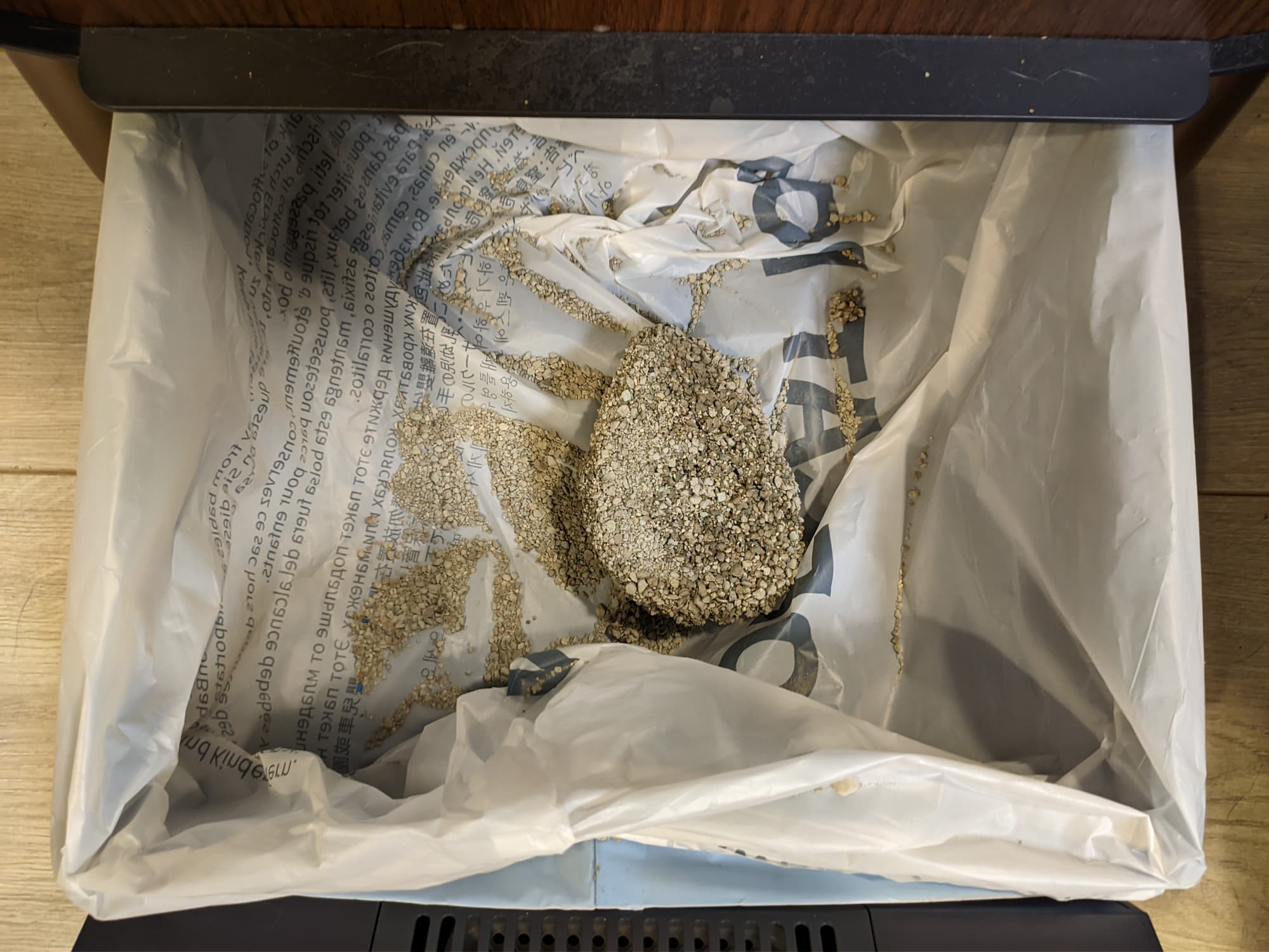 Итак, с фильтрацией жидкости мы уже разобрались. А как выглядит фильтрация твердых отходов? Мы дождались посещения туалета котом и убедились, что кот действительно сделал все свои дела.