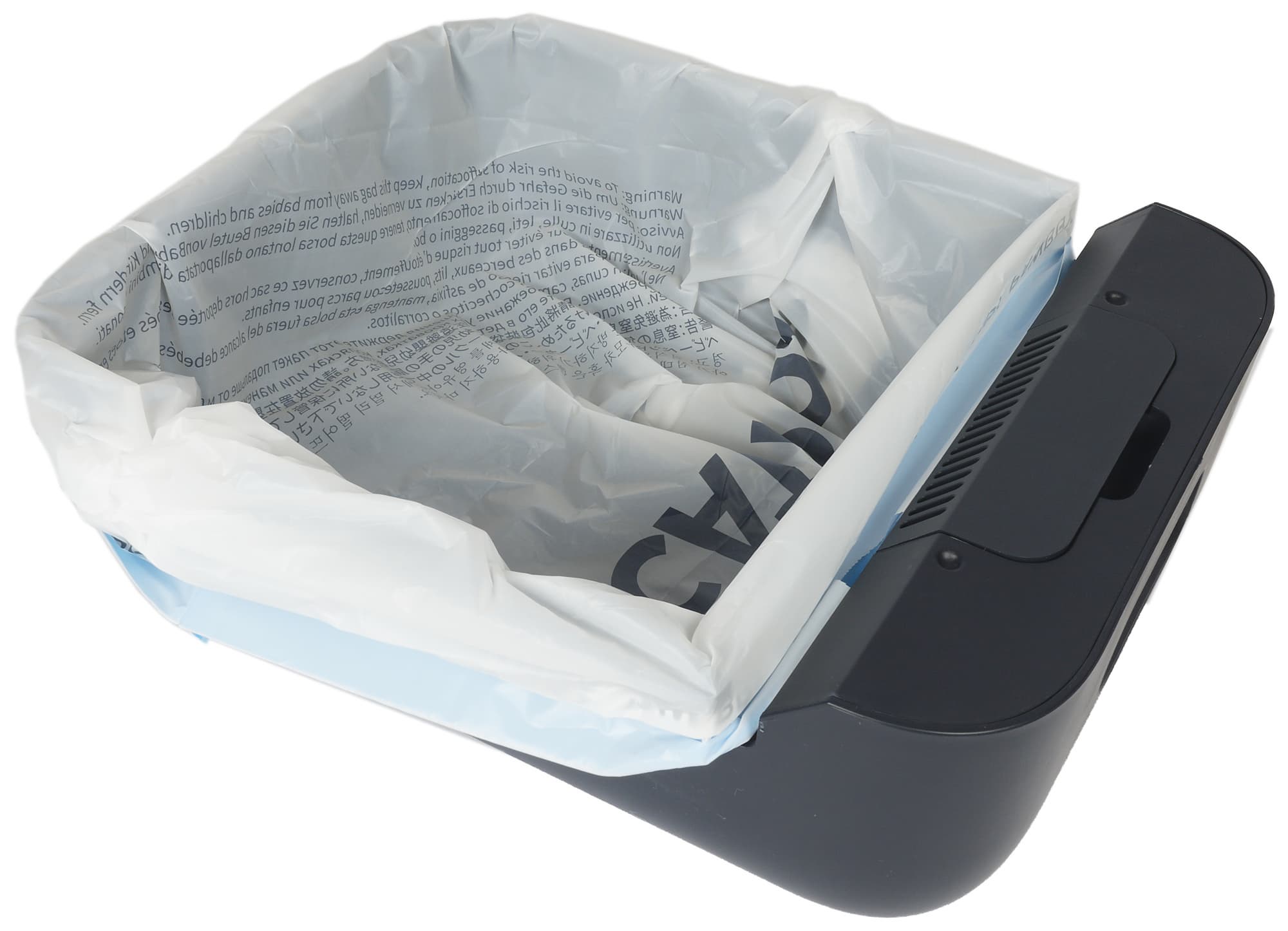 Перед началом эксплуатации в лоток нужно постелить один из 10 мешков, идущих в комплекте с устройством (либо воспользоваться своим личным пакетом).