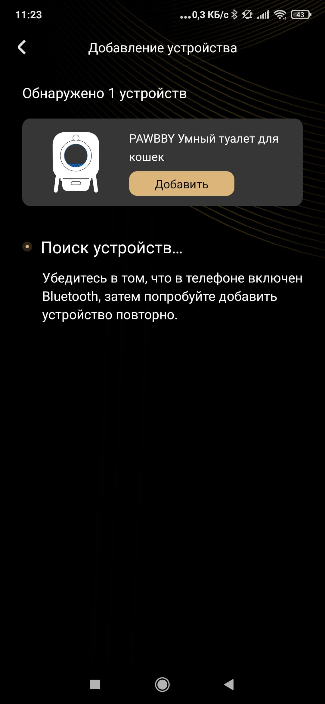Управление кошачьим туалетом подразумевает использование мобильного приложения. Устройство работает исключительно с сетями Wi-Fi 2,4 ГГц. После установки приложения (можно воспользоваться QR-кодом из руководства пользователя) нам предстоит зарегистрироваться и добавить новое устройство.