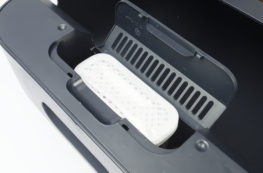 В передней части лотка находится отсек для сменных деодорирующих капсул.