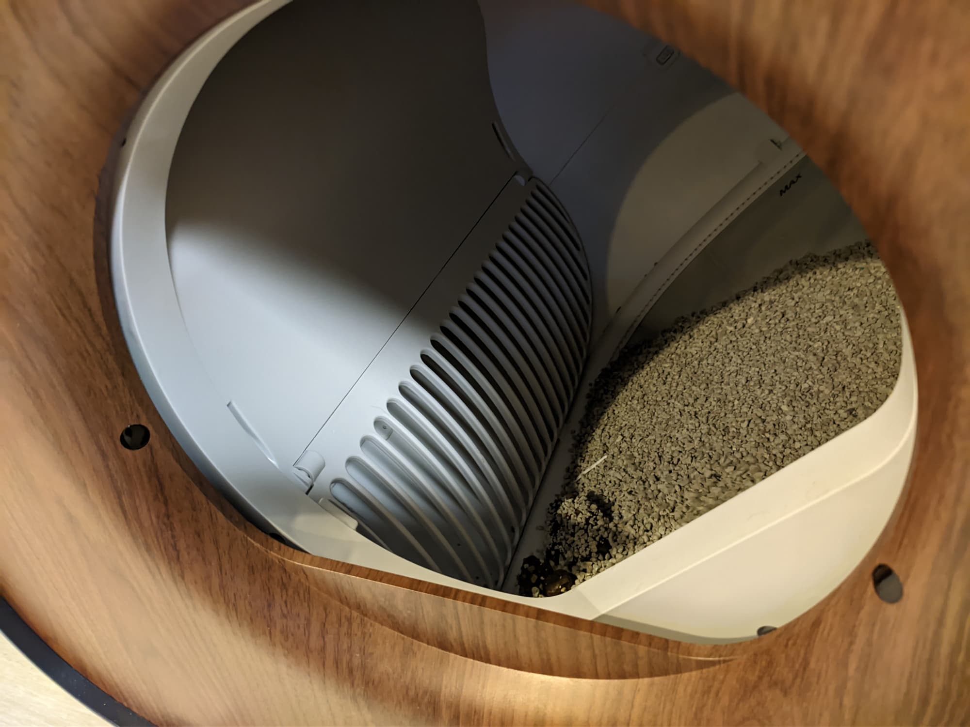 После того, как продукты кошачей жизнедеятельности как следует извалялись в наполнителе, барабан совершил полный оборот, сбросив содержимое в нижний поддон.