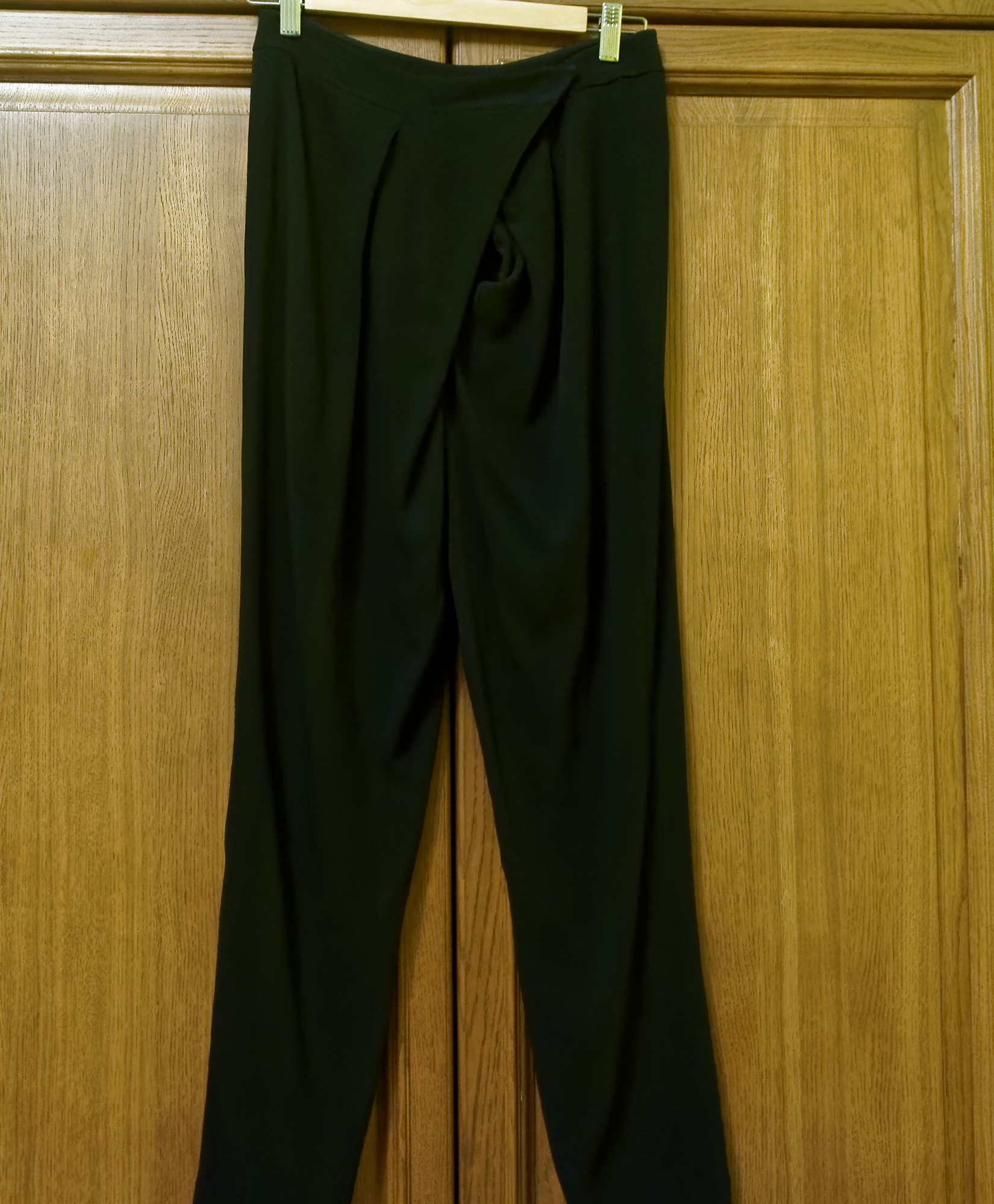 Эту вещь тоже лучше всего гладить вертикальным отпариванием. Материал изделия благодарно вбирает в себя пар и начинает расправляться под собственной тяжестью. Самое сложное — расправить складки и вытачки спереди на поясе.