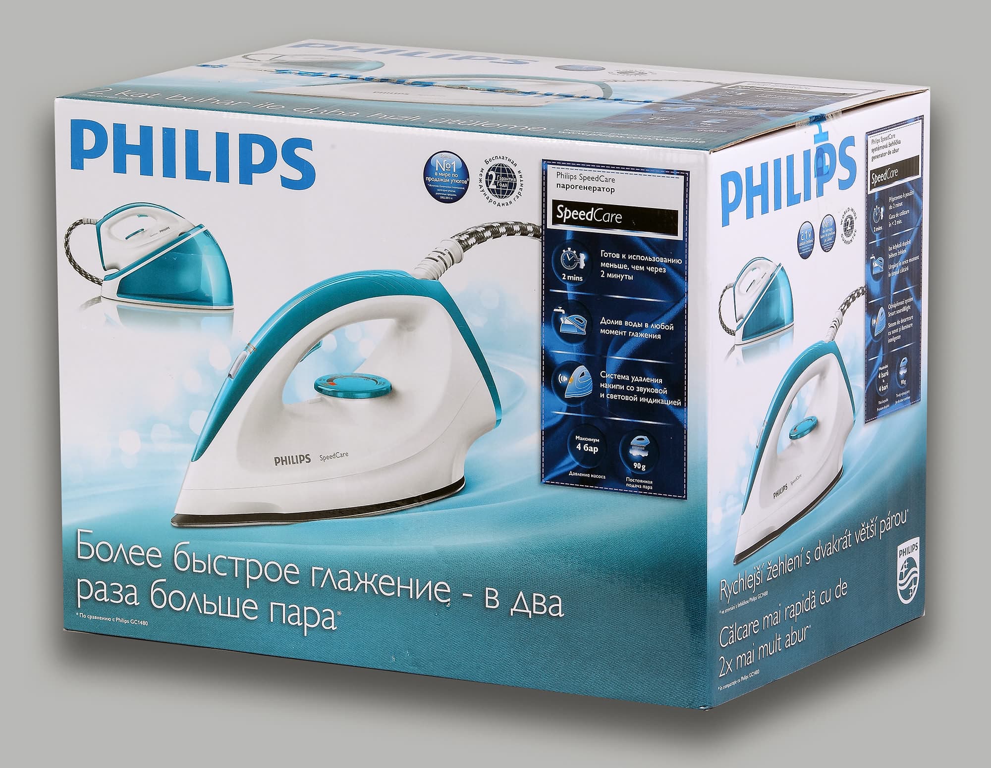 Протестированный нами прибор — из нижнего сегмента рынка паровых станций. У Philips GC 6602/20 нет никаких лишних фишек и маркетингового обвеса, он просто доступная по цене паровая станция. Это уже вполне достаточное заявление для привлечения внимания. В остальном наш подопытный выглядит весьма ординарно — как пластмассовый бытовой прибор, сошедший с большого конвейера на китайском заводе.