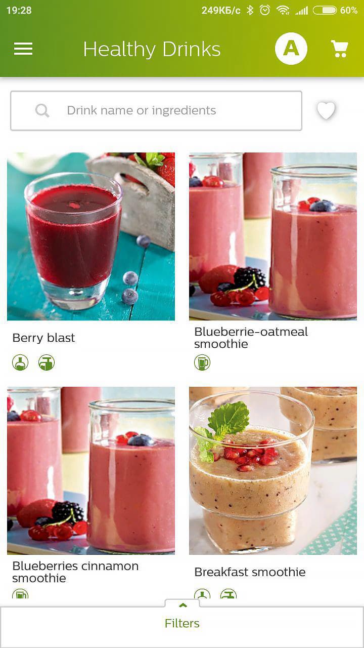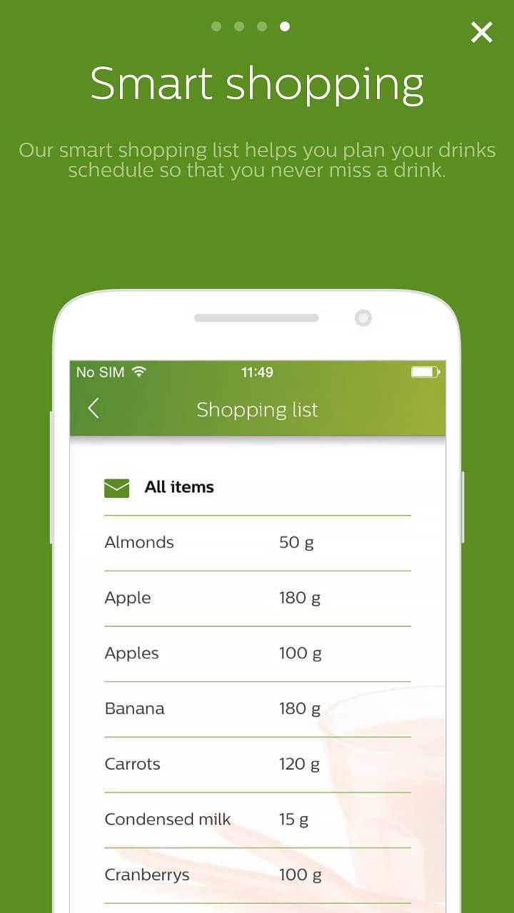 Отдельно стоит упомянуть о специальном приложении для смартфонов Healthy Drinks, которое может стать не только источником всевозможных рецептов для блендера, но также поможет учитывать употребленные калории и витамины и планировать покупки (достаточно выбрать заинтересовавшие коктейли, указать сколько порций коктейля вы хотите получить, и все необходимые ингредиенты автоматически окажутся в списке покупок).