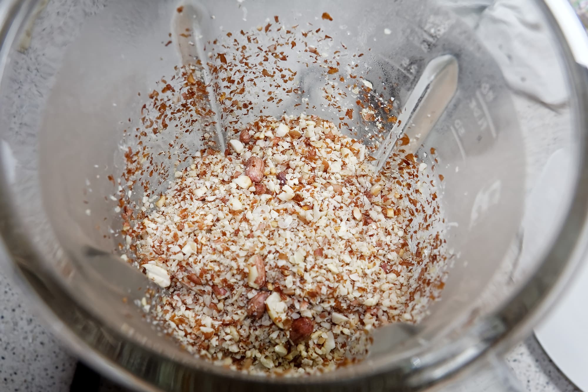 Результат нас не впечатлил: по завершении измельчения (до добавления масла) в кувшине блендера обнаружилось смесь слишком крупная для того, чтобы из нее получилась однородная арахисовая паста. Не помогло ни дополнительное измельчение, ни добавление дополнительного масла. Смесь оставалась зернистой и рассыпчатой. По результатам у нас закралось подозрение, что ошибку допустили составители книги рецептов: все-таки измельчение орехов и приготовление пасты — это не слишком стандартный сценарий для стационарного блендера.