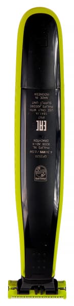 Разъем для адаптера питания находится сзади. Включать можно только устройство с отсоединенным адаптером питания, при попытке включить OneBlade в процессе зарядки просто ничего не произойдет.