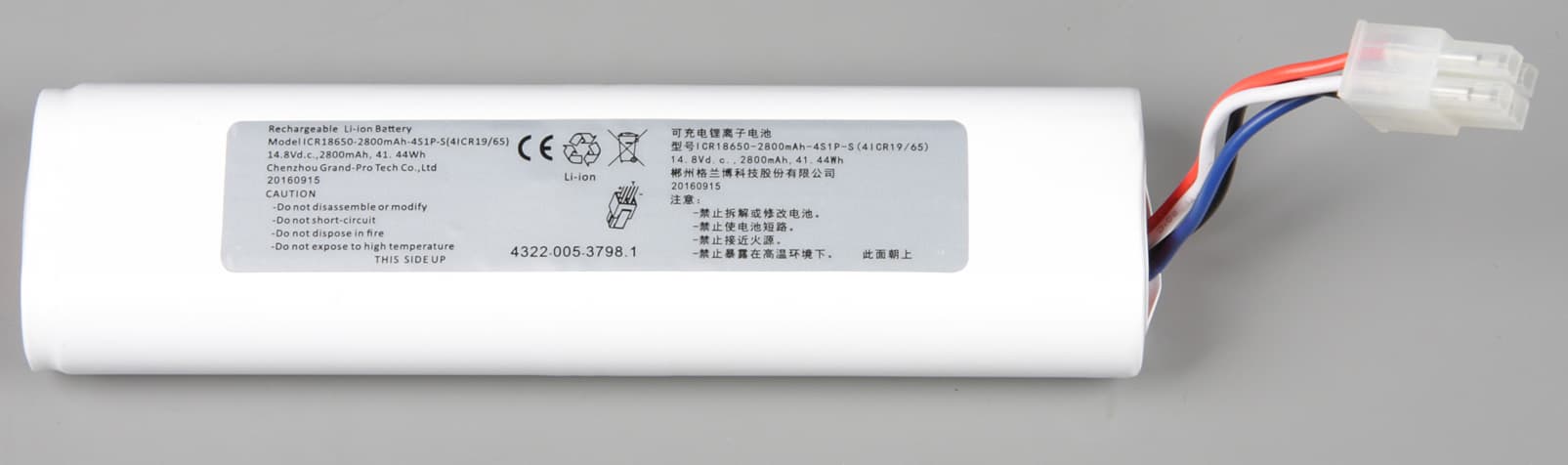В данном роботе установлена литий-ионная аккумуляторная батарея (составленная, по всей видимости, из четырех популярных элементов типоразмера 18650). Заменить батарею может сам пользователь, но производитель настаивает на том, чтобы эта процедура выполнялась квалифицированным сервисным инженером в авторизованном сервисном центре.