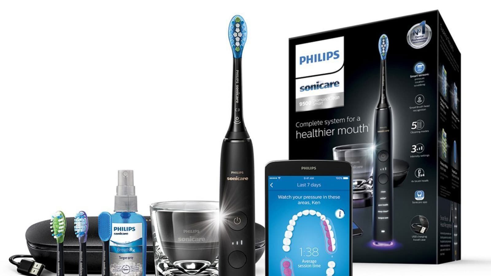 Электрические зубные щетки в последнее время пошли в народ — по крайней мере, самые простенькие уже можно купить не в аптеке, а в супермаркете. Однако дорогие модели все-таки могут заинтересовать потребителя — в первую очередь, за счет дополнительных опций и удобства в использовании. Каковы же преимущества высокотехнологичного прибора для чистки зубов, узнаем на примере зубной щетки Philips Sonicare 9500 DiamondClean Smart. Итак, у нас впереди четыре сменные насадки (на самом деле три — четвертой будем чистить язык), пять предустановленных режимов, период привыкания и игры с приложением. Посмотрим?