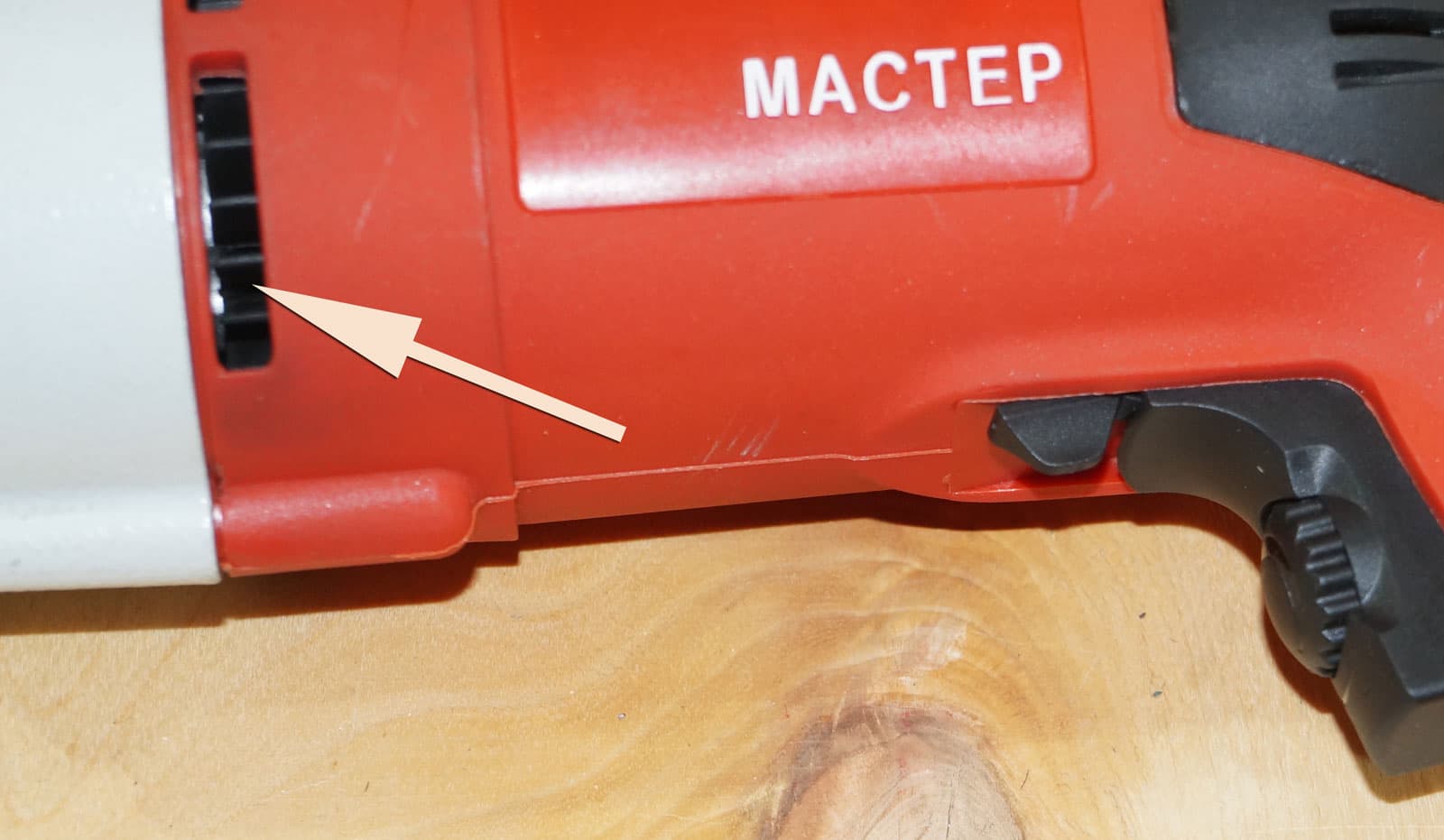 Рассматриваемый сегодня инструмент относится к классу профессиональных. На это указывает металлический сплав корпуса редуктора. Ну и, конечно, надпись «Мастер» на корпусе.