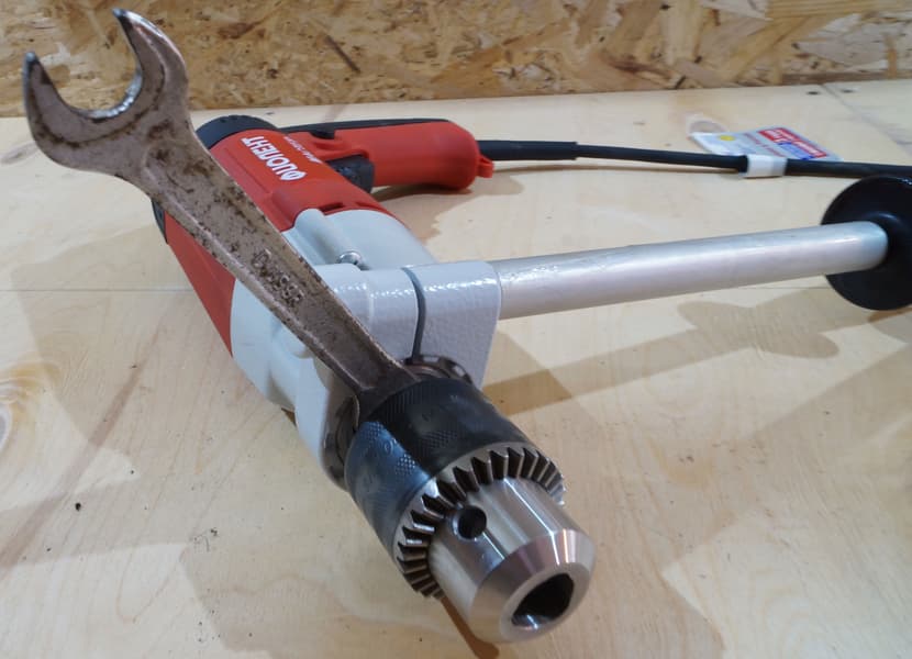 Необычно тяжелый инструмент становится еще более увесистым вместе с огромным патроном и чрезвычайно длинной металлической же рукоятью — почти три килограмма. Это плохо? В бытовом применении — несомненно. Однако профессионал понимает, что большая масса означает большую инерцию, благодаря чему инструмент во время заклинивания сверла не вывернет мгновенно руку. Еще большую устойчивость по оси дает удлиненная рукоять. Ведь чем длиннее рычаг — тем выше момент силы, который вы можете приложить к детали, спросите Архимеда.