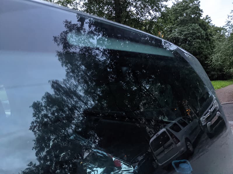 При дневном освещении номера неподвижных автомобилей на записях с фронтальной камеры хорошо читаются с расстояния до шести-семи метров в центре кадра, а по краям поля зрения чуть поменьше — метров до пяти. Значительно хуже обстоят дела с различимостью у движущихся в попутном направлении машин: даже на небольшой относительной скорости они смазываются. Номера же встречных в большинстве случаев распознать практически невозможно.