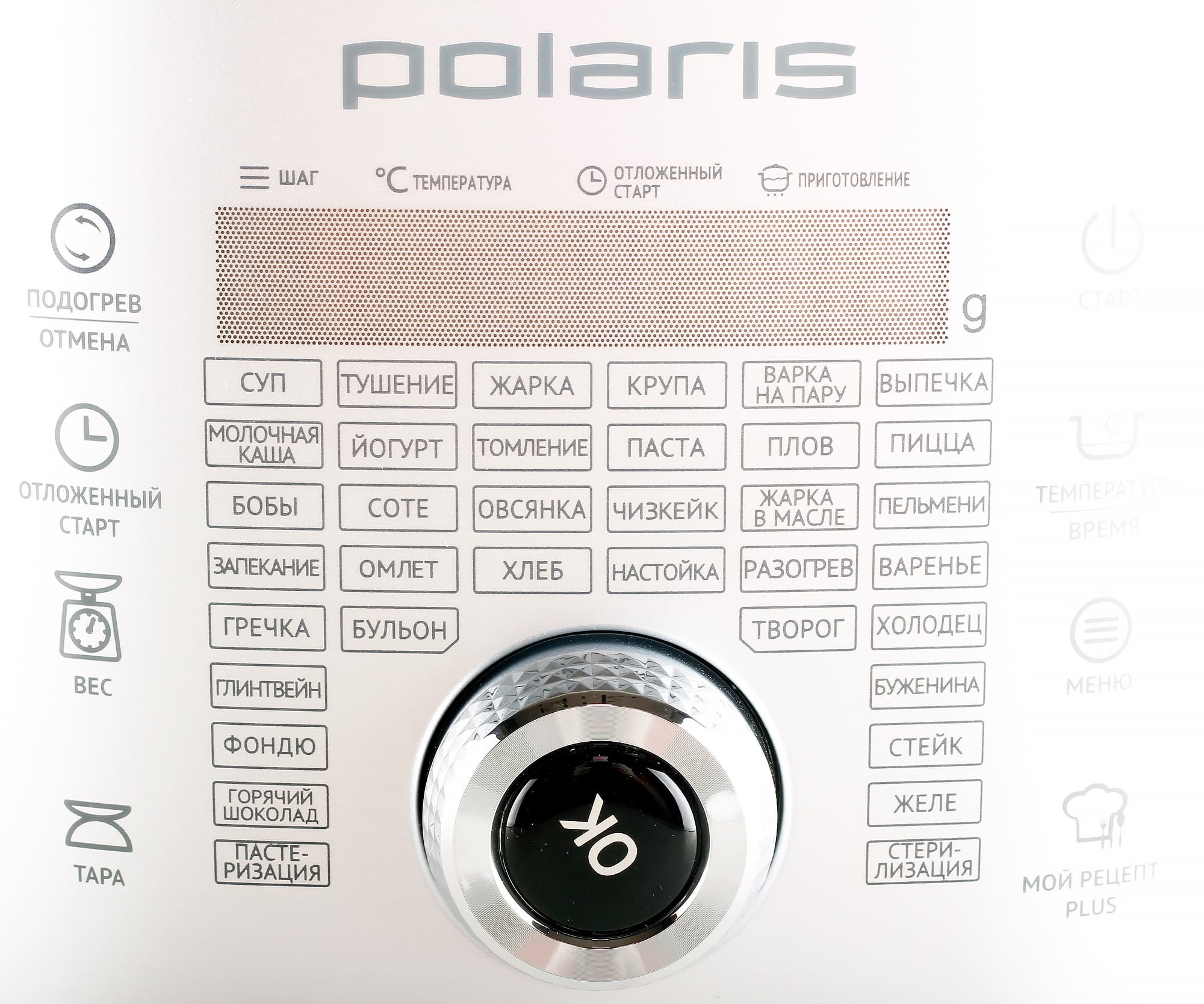 Герой нашего сегодняшнего обзора — мультиварка Polaris, оснащенная рядом дополнительных функций, в числе которых отметим возможность создания последовательности из различных пользовательских режимов и встроенные весы, позволяющие измерять вес продукта внутри чаши.