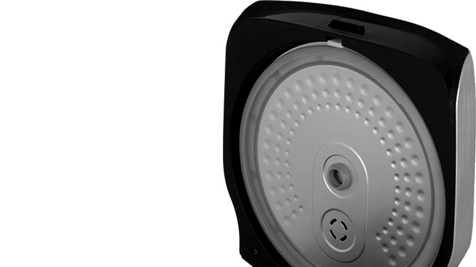 Спереди находится панель управления, состоящая из вращающейся ручки, сенсорных кнопок и светодиодных индикаторов, отображающих текущий выбранный режим.