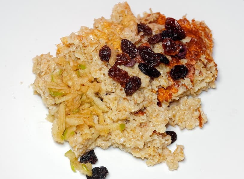 В начале этапа, когда молоко закипит, в чашу нужно всыпать овсяные хлопья. Изюм нужно промыть и замочить в теплой воде на пять минут. Яблоко натереть на крупной терке, удалив сердцевину.
