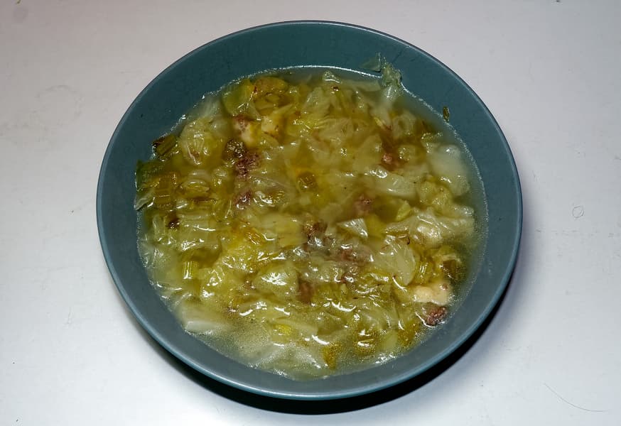 К качеству рецепта претензий у нас не обнаружилось: мы получили вполне предсказуемый капустный суп с небольшим количеством мяса. А вот к работе автоматических режимов возникли вопросы: дело в том, что на одной из начальных стадий приготовления суп кипел настолько сильно, что излишки влаги разбрызгивались через клапан для выхода пара — на крышку мультиварки и на стол.