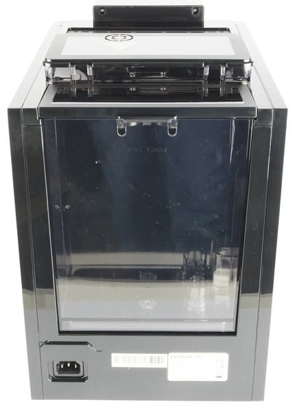 Заглянем через прорези внутрь и увидим вентилятор. Неожиданная находка! Зачем он тут нужен? Домашние кофеварки с той же мощностью отлично работают безо всяких вентиляторов! Начинка внутри плюс-минус одинаковая, греется все тоже одинаково... так что данное изобретение сумрачного гения принесет нам, разве что, дополнительный фоновый шум в помещении. Кто вспомнит хоть одну домашнюю кофемашину с вентилятором? Мы одну вспомнили, да и то не без труда...