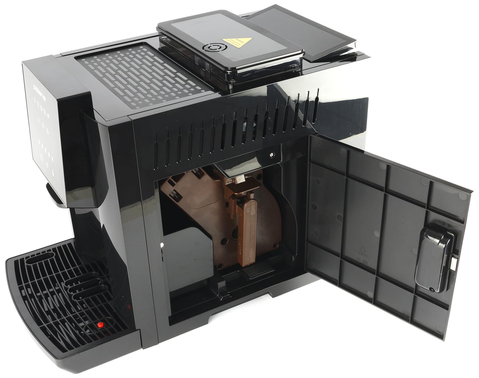 По форме решетки мы догадываемся, что слева у родственной модели когда-то был капучинатор. Очевидно, перед нами единый корпус, который используется сразу у нескольких моделей — как с капучинатором, так и без него.