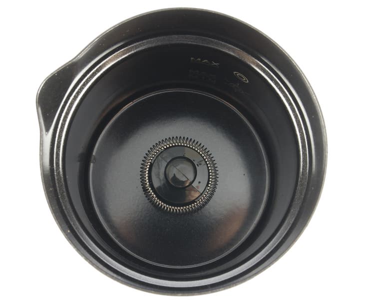 На внутренней стороне нанесены отметки минимального и максимального допустимого уровня молока для подогрева и вспенивания соответственно. Для вспенивания рекомендуется брать 110 мл молока, для подогрева — до 200 мл.