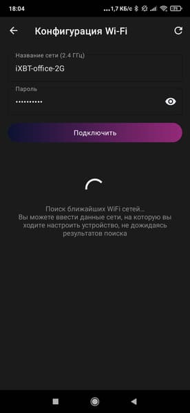 В процессе подключения приложение самостоятельно обнаружит кофеварку и предложит сообщить ей данные Wi-Fi-сети (название сети и пароль).