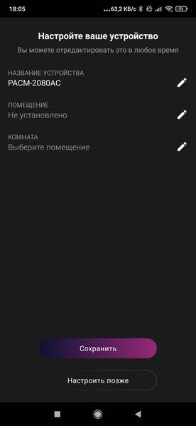 При первоначальной настройке можно изменить название устройства, а также указать, в каком помещении оно находится.