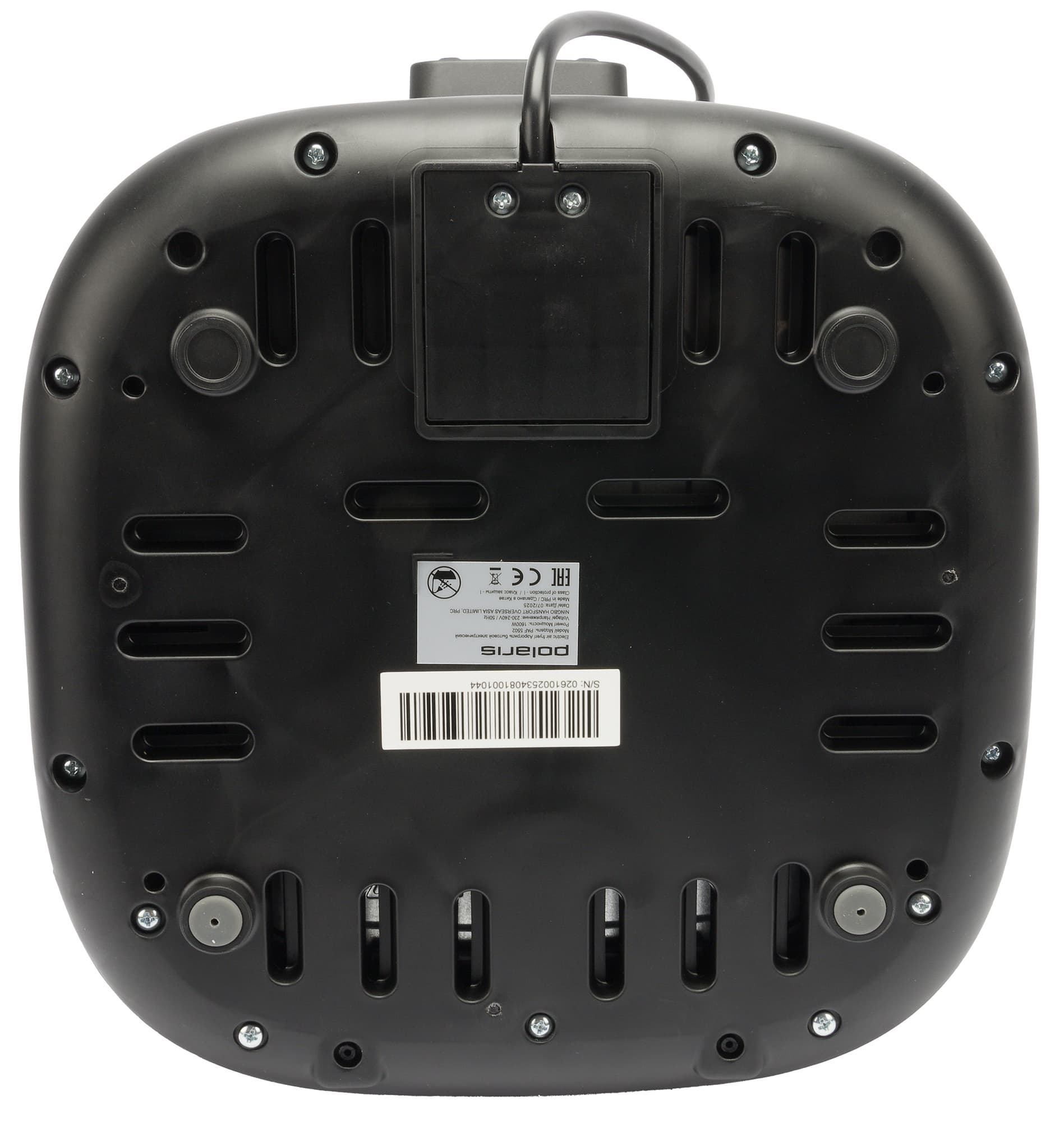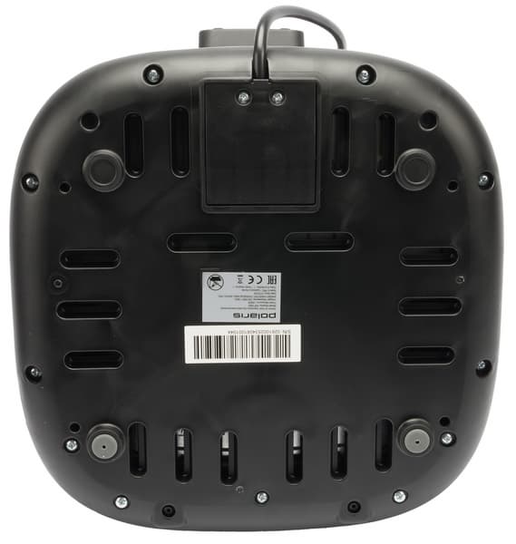 На дне устройства находятся четыре резиновые ножки, препятствующие скольжению, а также вентиляционные отверстия для охлаждения гриля во время работы и место крепления сетевого шнура длиной 120 см.