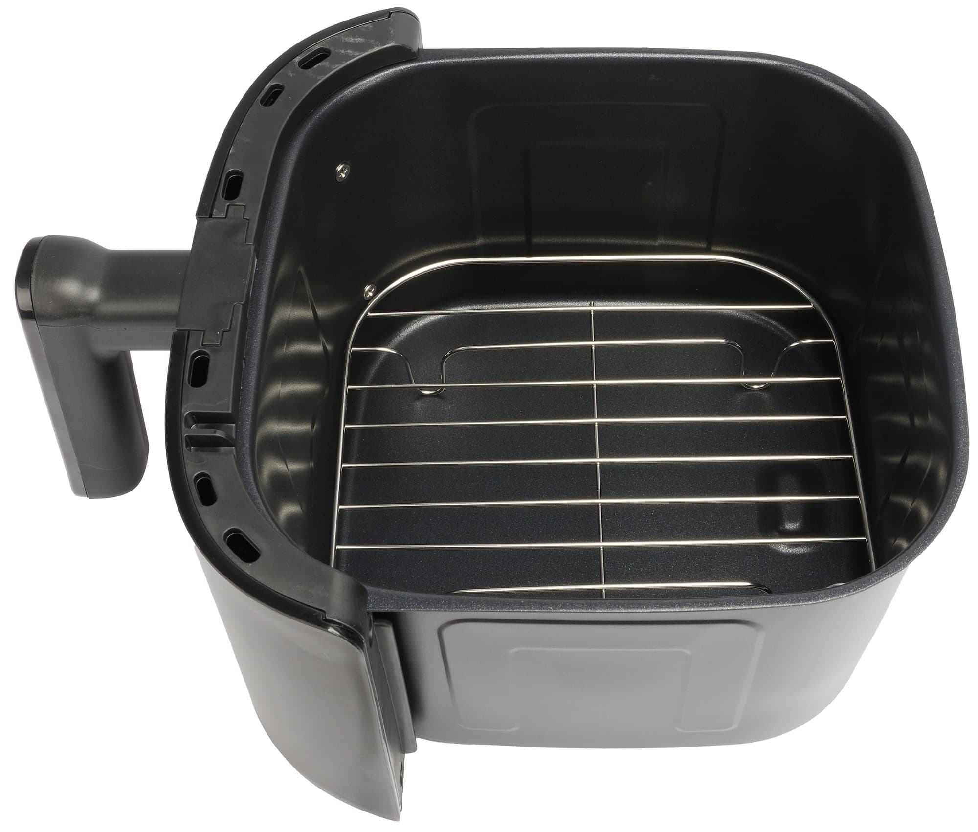 Чаша аэрогриля выдвигается с помощью удобной термоизолированной ручки. Извлечение емкости и ее обратная установка в корпус происходят без затруднений. Смотрового окошка в этой модели не предусмотрено.