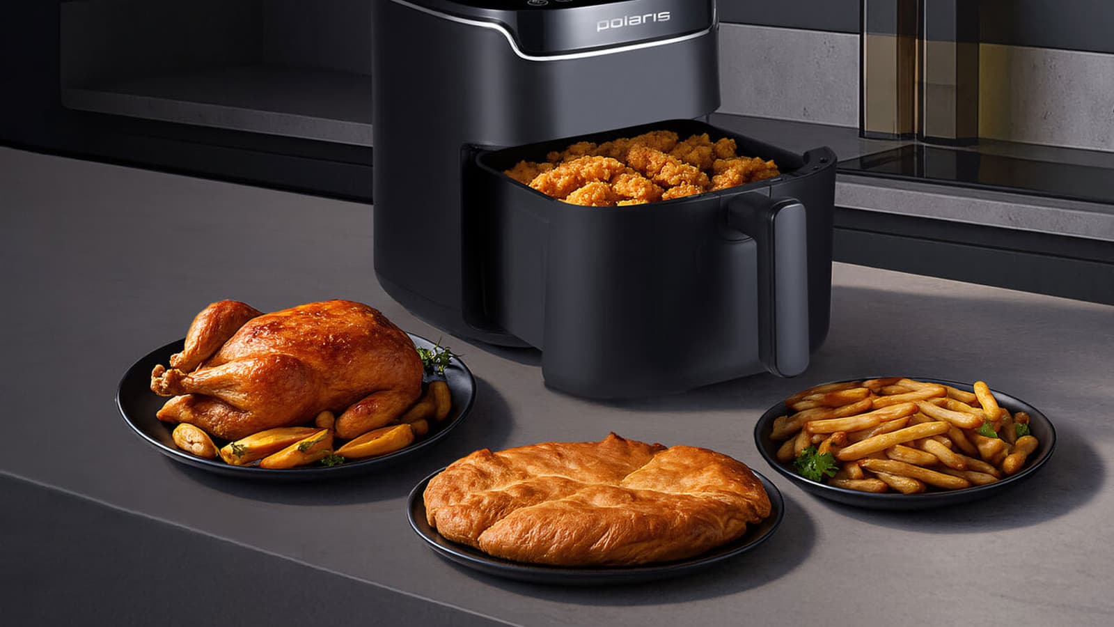 Устройство отлично справляется с приготовлением самых разных блюд в расчете на 2-3 порции и даже способно запечь целую крупную курицу. В случае, когда одним прибором нужно заменить сковороду, тостер, фритюрницу, микроволновку и даже духовку, если речь идет о небольших порциях, Polaris PAF 5502 будет очень кстати.
