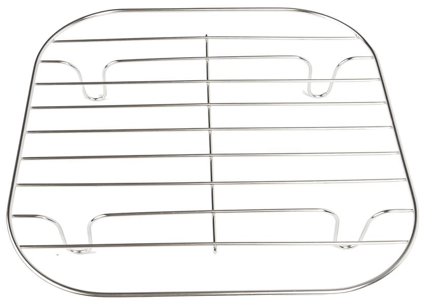 При установке решетки в чашу, в зависимости от веса уложенных на нее продуктов, до дна емкости остается около 1,5-2 см свободного пространства. Таким образом лишняя жидкость и жир стекают на дно чаши, что способствует образованию хрустящей корочки. По краям аксессуар оснащен небольшими резиновыми уплотнителями, не дающими ему царапать стенки чаши.