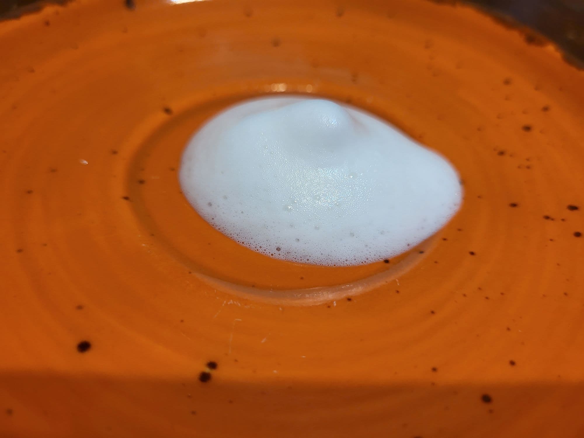 Следующим тестом было вспенивание молока для латте. У латте пена получилась менее пышная, чем у капучино, более крупнопузырчатая и менее стойкая: