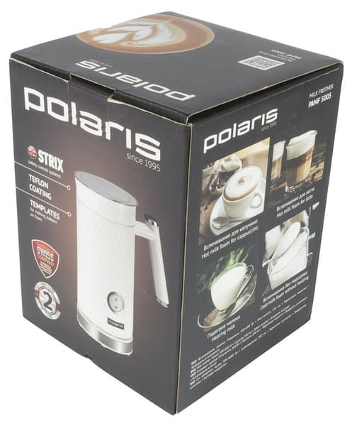 Вспениватель молока Polaris PAMF 5005 оказался простым и полезным прибором, с помощью которого можно получить разные виды пены для кофе, а также просто разогреть молоко. Температура разогретого молока не очень высокая, но это и неплохо — особенно если вам немедленно надо дать теплого молока маленькому ребенку. Управление, уход и эксплуатация прибора не вызвали никаких сложностей.