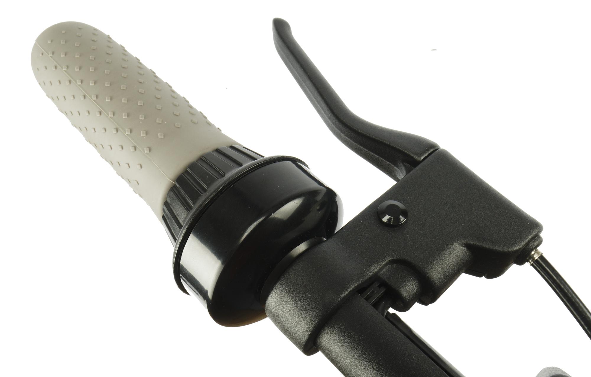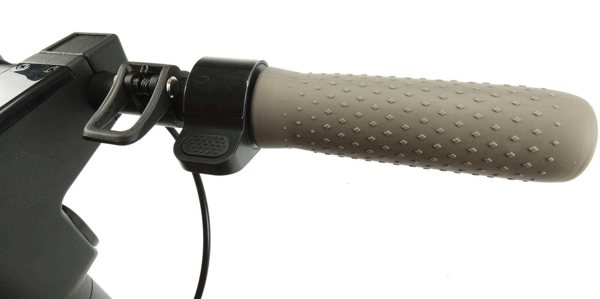 Подпружиненный рычаг газа плавно нажимается и столь же плавно автоматически возвращается в исходное положение. Скорость регулируется в зависимости от выбранного режима. То есть, на режиме «пешеход» незначительное нажатие практически не повлияет на скорость движения, а среднее положение рычага газа будет соответствовать скорости в 3 км/ч. А вот в спортивном режиме даже небольшое нажатие на рычаг газа тут же приведет к заметному увеличению скорости. Среднее положение рычага газа будет соответствовать 12-13 км/ч.