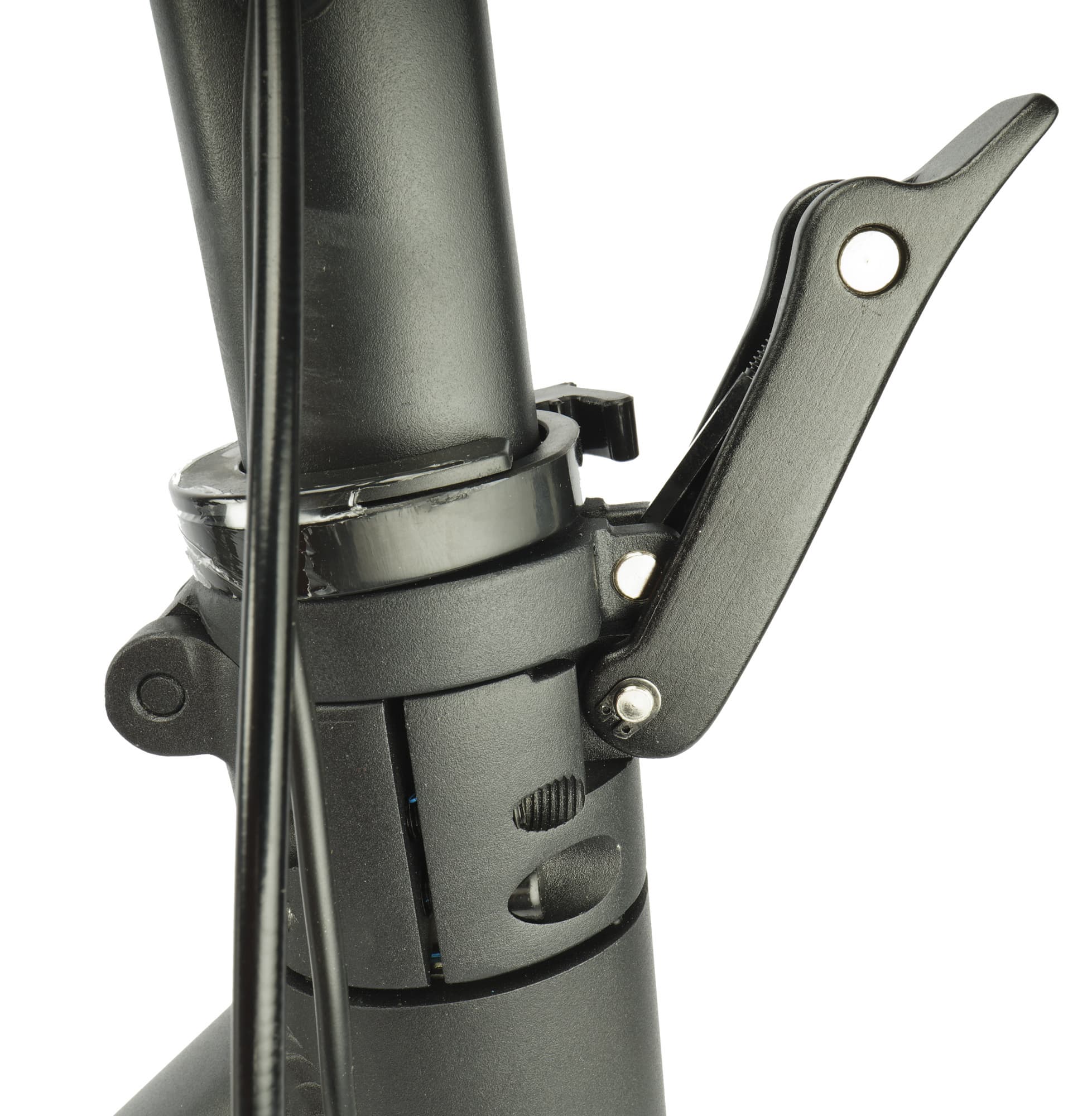 Таким образом, пластиковое кольцо является единственным механизмом, отвечающим за безопасность в фиксации стойки. Насколько это надежно — каждый решит сам. Мы же можем лишь сообщить, что вот такое пластиковое кольцо — это стандартное решение для целого ряда складных моделей.