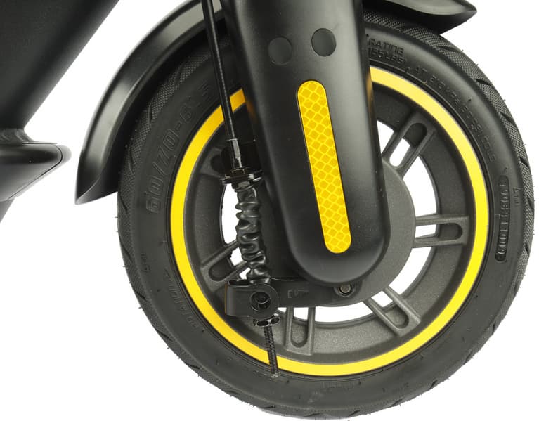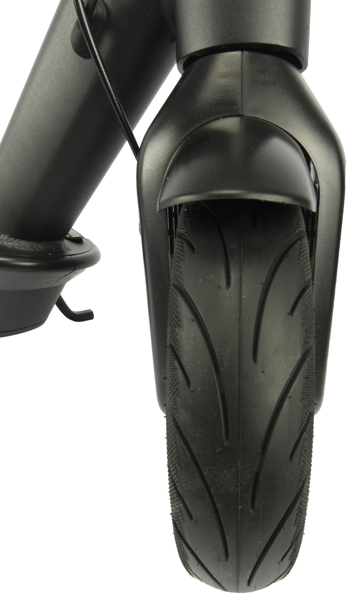 Надувные колеса имеют диаметр в 10 дюймов. Амортизаторов не предусмотрено, поэтому именно им придется компенсировать тряску и удары, которые так или иначе возникают при взаимодействии с неровностями на дороге.