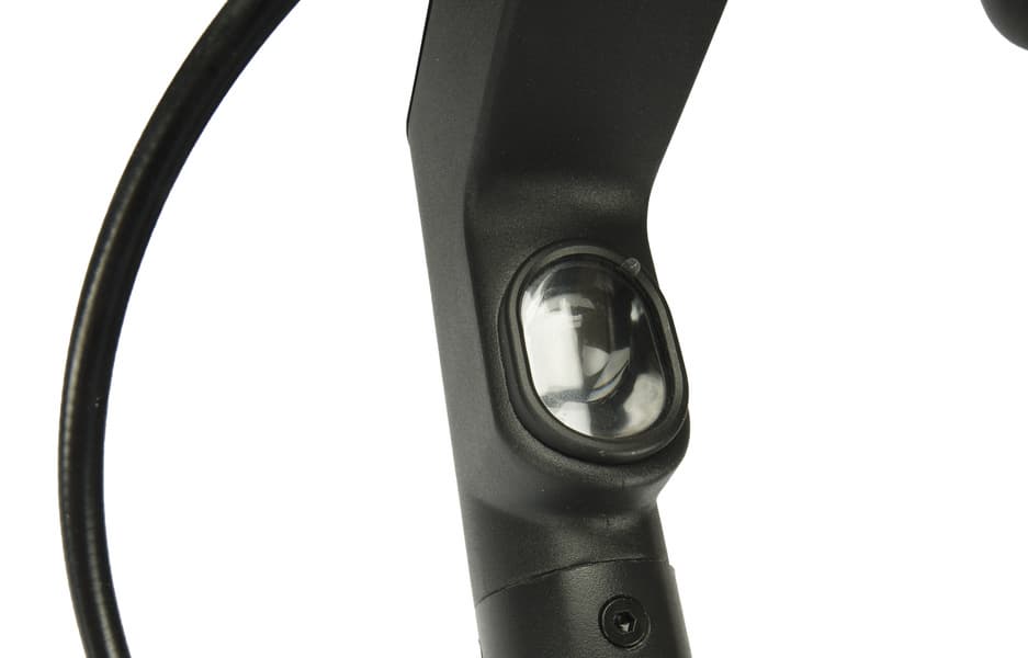 Спереди на рулевой стойке расположена фара для подсветки дороги во время езды в темное время суток.