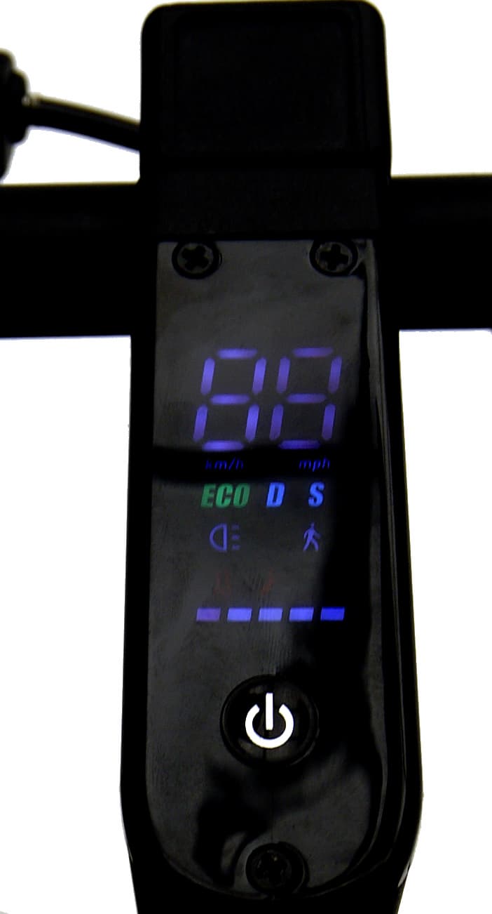 Приборная панель самоката представляет собой светодиодный дисплей, на котором отображается вся необходимая информация.