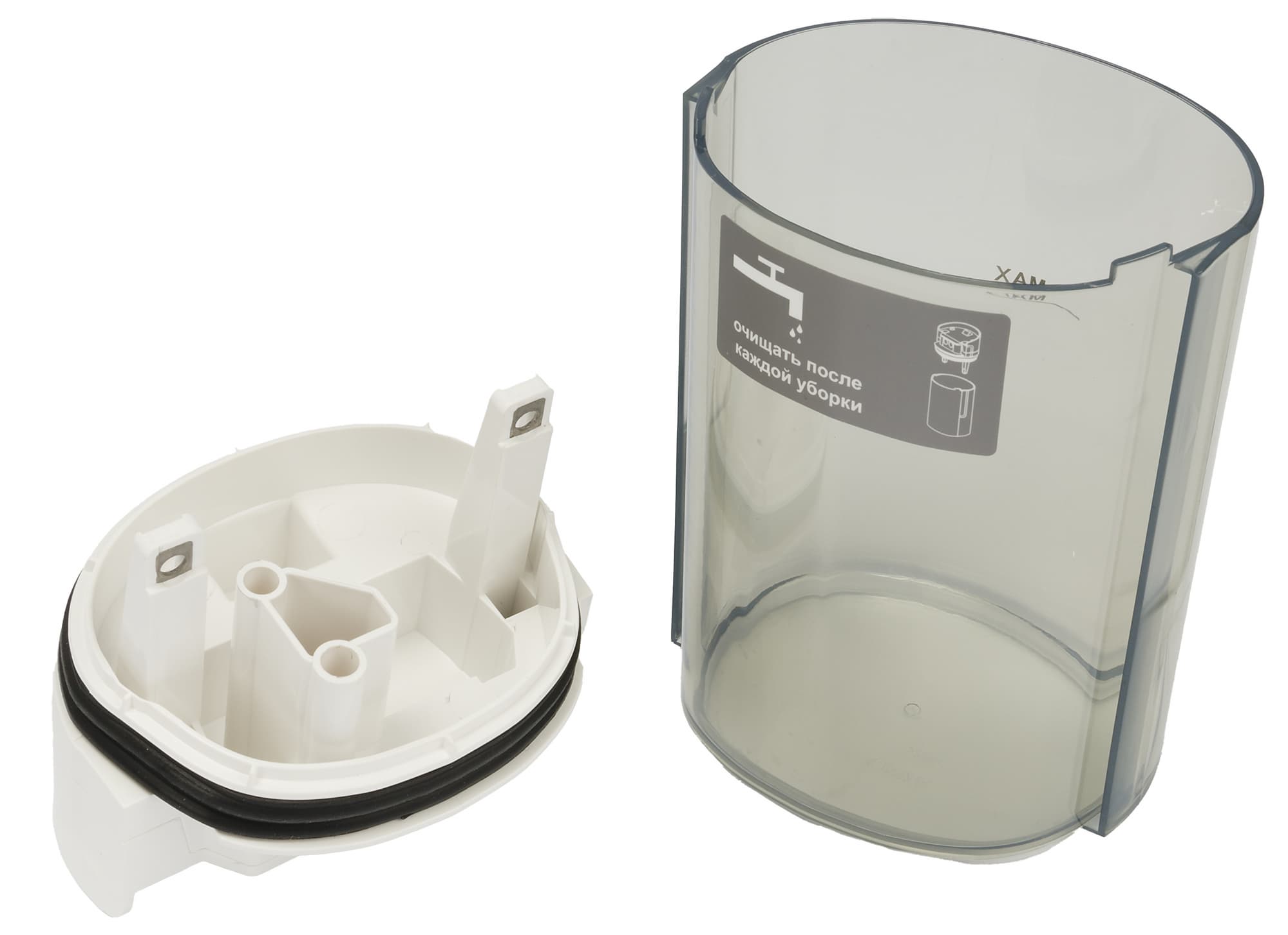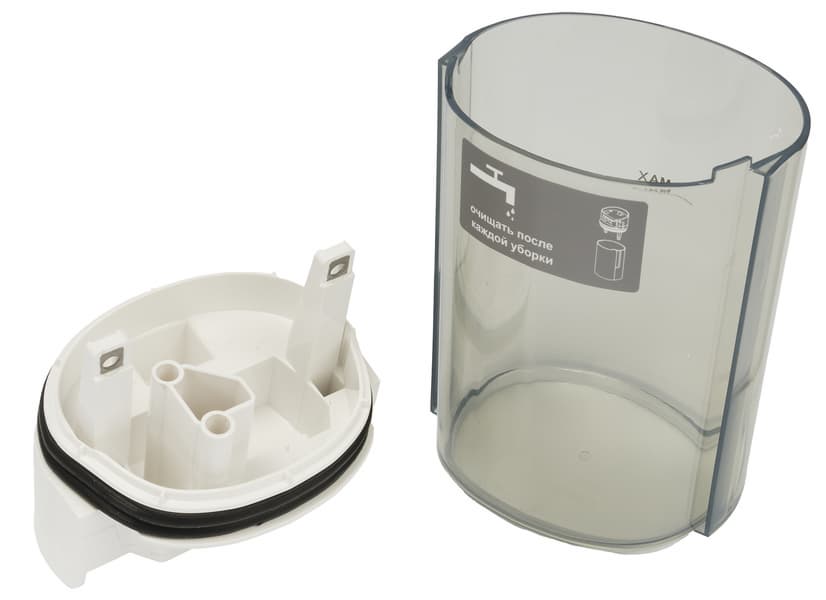 Отверстие для залива воды, завинчивающееся клапаном находится в нижней части резервуара. В крышке предусмотрен жиклер, через который вода подается в модуль электрощетки.