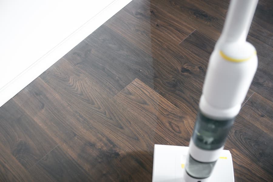 Едва заметные полоски на темном напольном покрытии могут видны, только если оба валика не были очищены после предыдущей уборки.