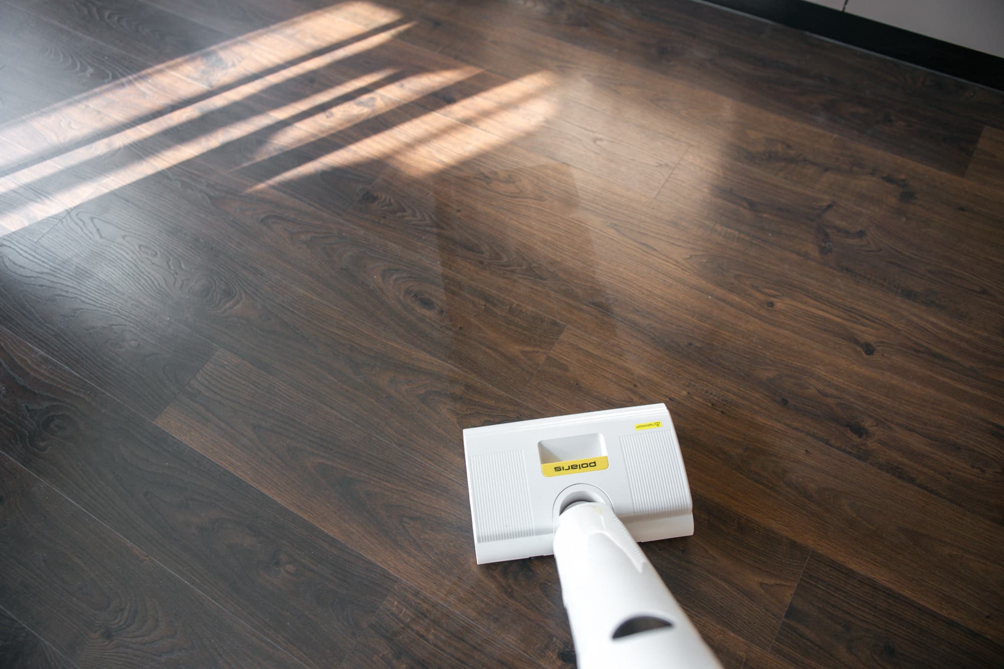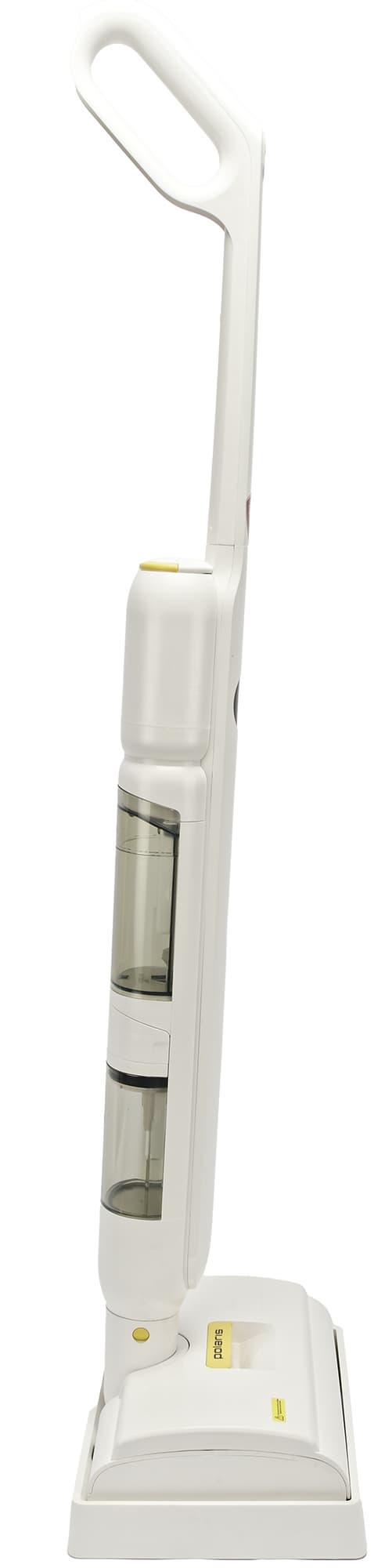 Уборка с Polaris PFW 3065 происходит быстро и просто. Маневренное устройство отлично собирает пыль и мелкий мусор, тщательно отмывает загрязнения, при этом умеренно увлажняя пол. Единственный недостаток обусловлен конструкцией напольной насадки: швабра оставляет нетронутой 1,5 см у плинтуса, и, к сожалению, этот участок пользователю придется протирать иным способом. В остальном устройство удобно, элементарно в уходе и достаточно эффективно для ежедневной поддерживающей влажной уборки. 100% зарядки швабры хватает на 130 минут работы. За это время можно раза три целиком убрать двухкомнатную квартиру.