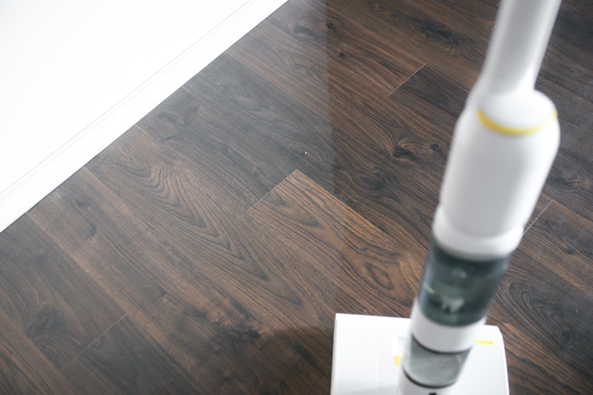Уборка с использованием Polaris PFW 3065 оказалась быстрой и простой. Все, что нужно сделать перед началом работы — убедиться, что аккумулятор заряжен, залить в резервуар воду и смочить валик нажав на кнопку очистки. Воду рекомендуется использовать умягченную и очищенную, поскольку жесткая вода может засорить жиклеры подачи воды в компонентах и деталях электрошвабры.