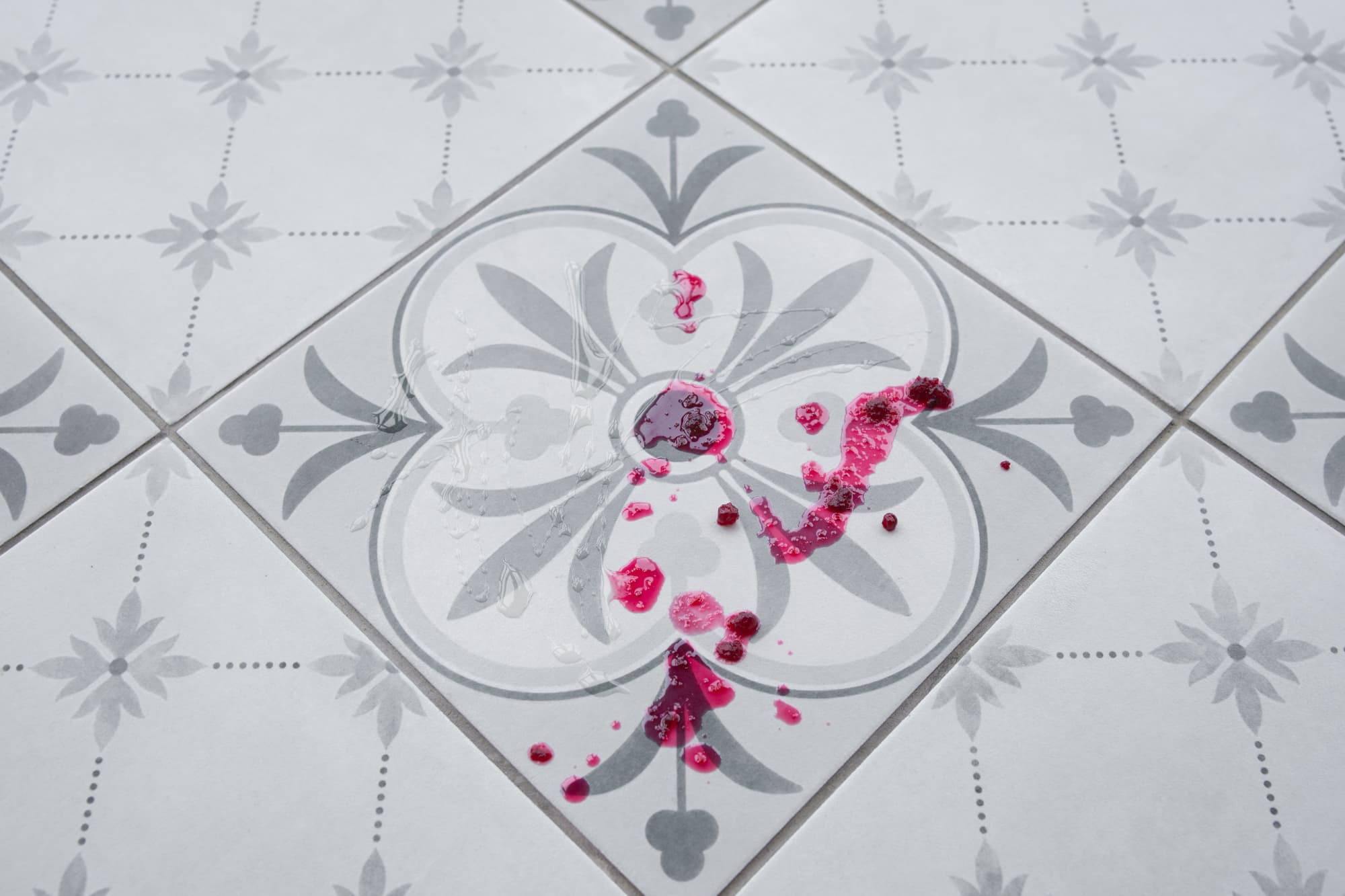 В следующий раз, в качестве эксперимента нанесли на плитку мед и варенье. Дали загрязнению высохнуть и на следующий день попробовали отмыть.