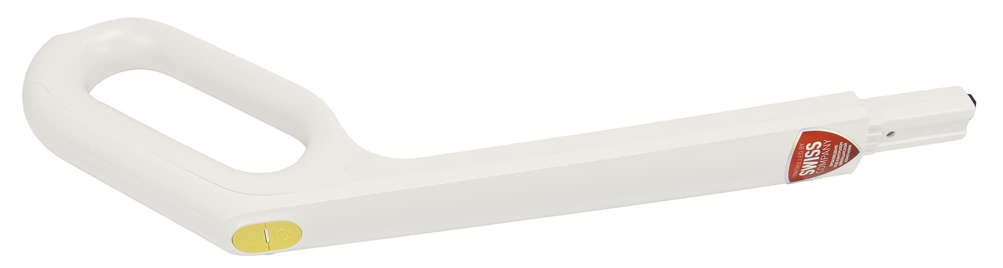 Ручка с удобным захватом вставляется в паз базового блока до упора. На внешней стороне находятся элементы управления — две механические кнопки.
