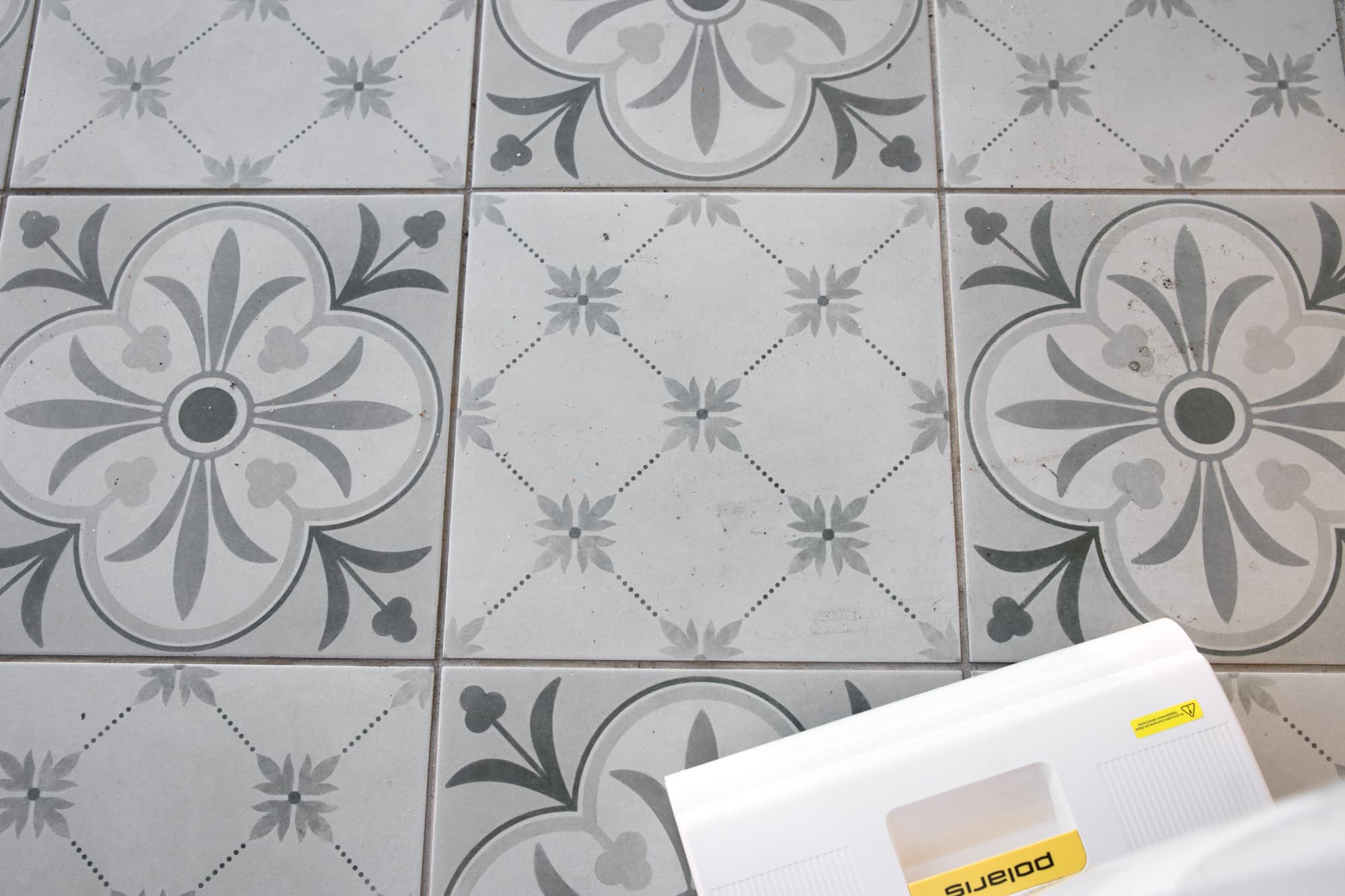 Мы попробовали помыть пол без предварительной очистки. В ожидании тестирования плитка на балконе специально не очищалась в течение двух недель. На полу скопилась заметная пыль и некоторое количество пепла от сигарет.