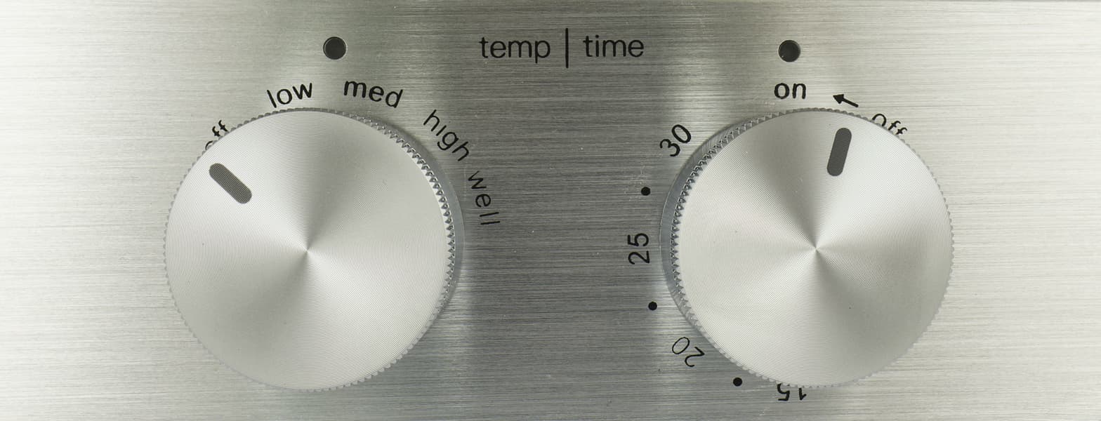 Таким образом, мы можем регулировать температуру (левой ручкой) и время приготовления (правой ручкой).