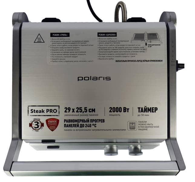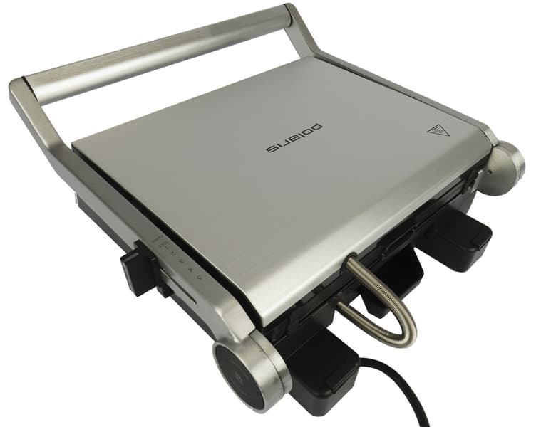 Герой нашего сегодняшнего обзора Polaris PGP 2803 — довольно мощный и современный, но при этом вполне классический гриль. Среди его характерных особенностей отметим съемные панели (которые можно мыть в посудомойке), встроенные нагревательные элементы (обеспечивают более точный и равномерный нагрев) и довольно высокую мощность — 2000 Вт (чего должно быть достаточно для всех бытовых кулинарных задач). Давайте протестируем это устройство и приготовим несколько блюд.